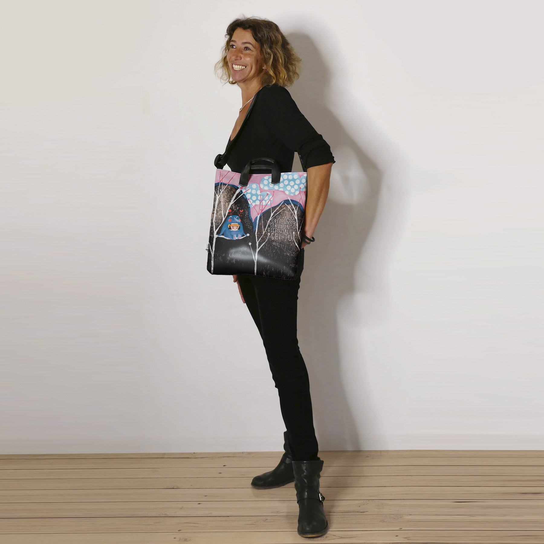 • La borsa Gazpacha con quella misura perfetta in generale, quella che dove la metti sta ma con entusiasmo. Può portare vita e lavoro in parti uguali ma preferisce la prima