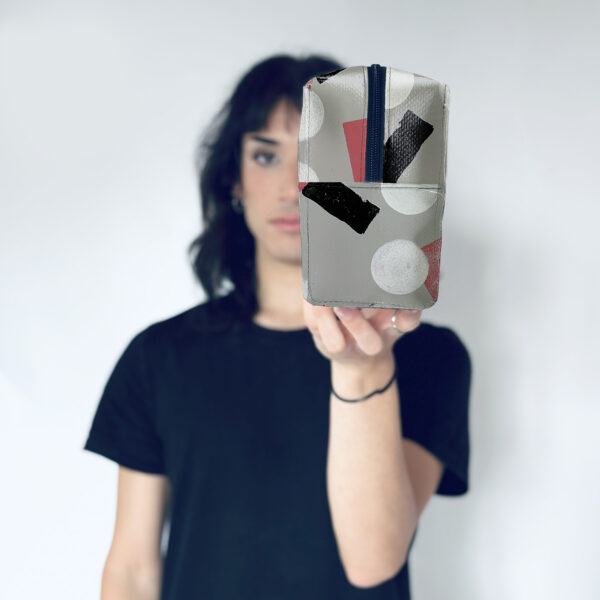 • Chiusura esterna con zip di colore nero