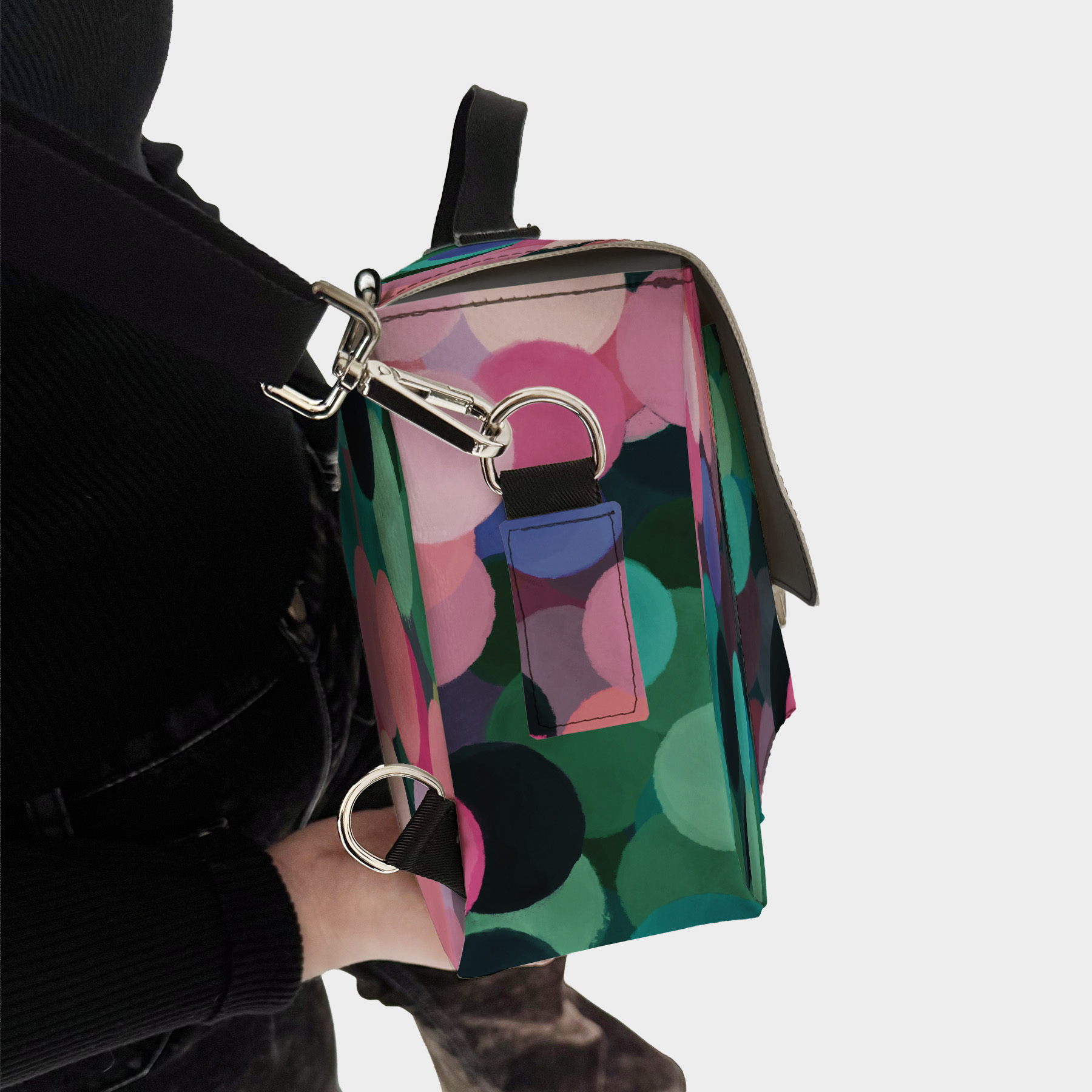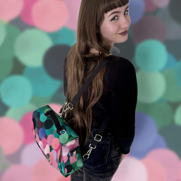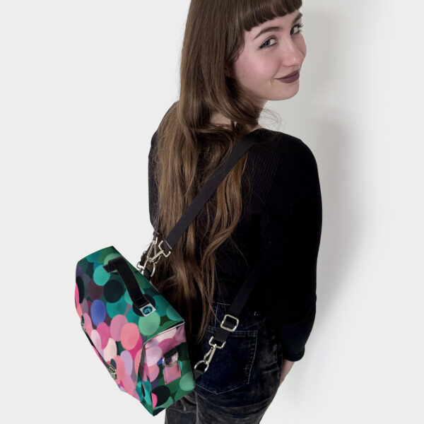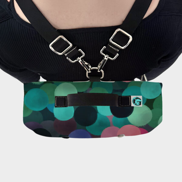 la borsa con le orecchie, quella che si lega alla sua umana a tracolla, ma anche a zaino.