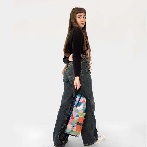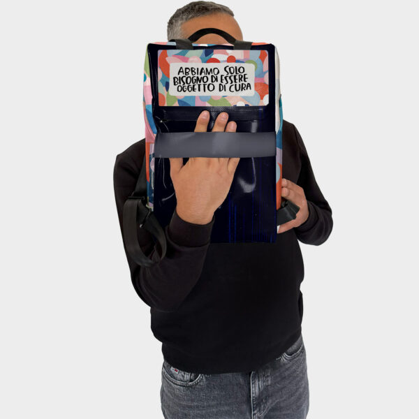 • Tasca frontale e Posteriore chiusa con zip nera