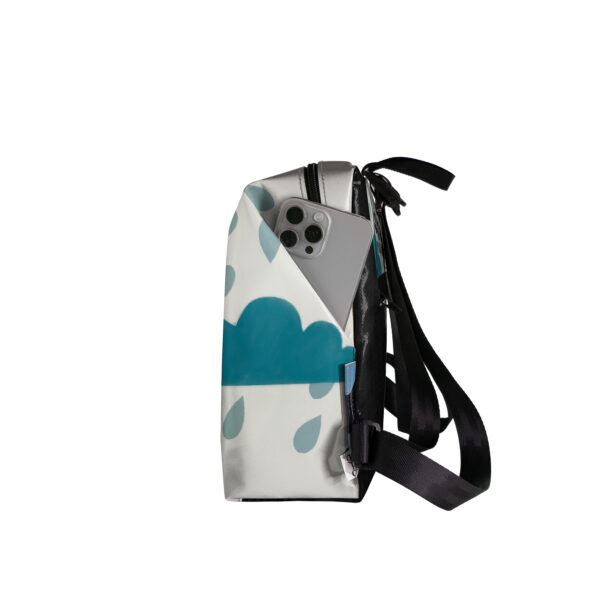• Tasca frontale e posteriore chiusa con zip nera